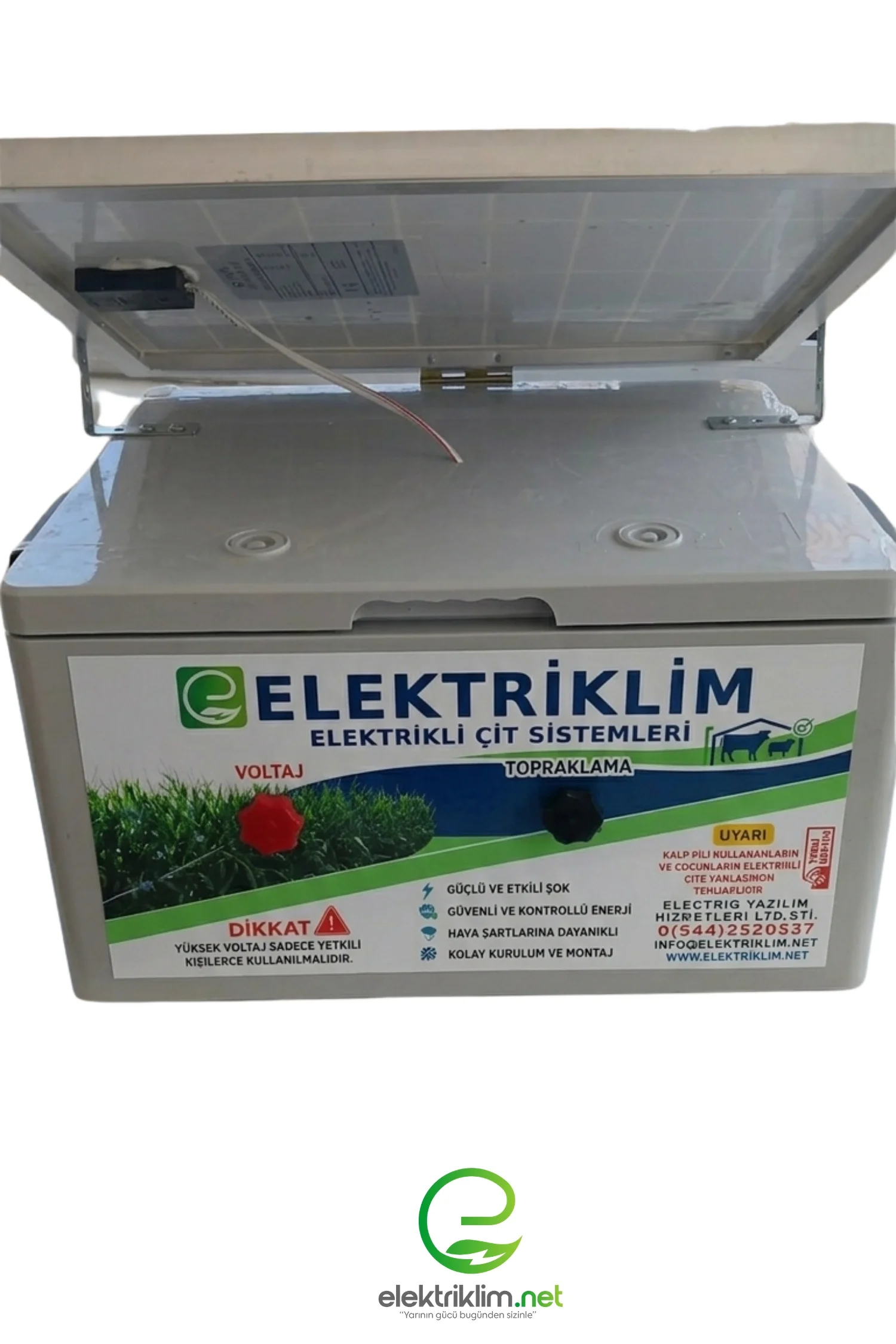 Elektriklim elektrikli çit cihazları, tarım arazileri, bahçeler ve hayvan koruma alanlarında güvenliği sağlamak amacıyla kullanılan etkili ve modern sistemlerdir. Bu cihazlar, çit hattına belirli aralıklarla düşük amperli ancak yüksek voltajlı darbeli elektrik akımı vererek istenmeyen girişleri caydırır. İnsan ve hayvan sağlığına zarar vermeyecek şekilde tasarlanan bu sistemler, temas anında kısa süreli bir uyarı etkisi oluşturarak güvenli sınır oluşturur. Dayanıklı yapısı, düşük enerji tüketimi ve kolay k